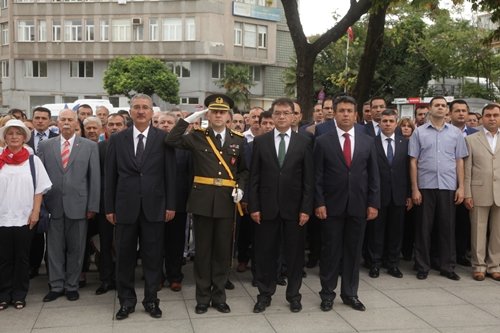 Siyasi parti temsilcileri ve diğer kurum ve kuruluşların ilçe temsilcilerinin de katıldığı törende, protokol üyelerinin Atatürk Anıtı’na çelenk sunmasının ardından saygı duruşuna geçildi ve İstiklal Marşı okundu. Törenin ardından ise Temel Karadeniz, protokol üyeleri ve vatandaşlarla bayramlaştı.