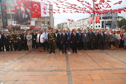 İlk tören, bayraklarla donatılan Maltepe Meydanı’nda mülki ve askeri erkânın katılımıyla yapıldı. Törene Maltepe Kaymakamı Mustafa Tapsız, Garnizon Komutanı Tümgeneral Gürsel Öztürk, Maltepe Belediye Başkanı Ali Kılıç, CHP Maltepe İlçe Başkanı Hasan Solmaz’ın yanı sıra, mülki ve askeri yetkililer, belediye meclis üyeleri, parti temsilcileri, sivil toplum kuruluşları, gaziler ile vatandaşlar katıldı. Çelenklerin sunulmasından sonra Gazi Mustafa Kemal Atatürk ve şehitlerimiz anısına 1 dakikalık saygı duruşunda bulunuldu, ardından İstiklâl Marşı okundu. Günün anlam ve önemini belirten bir konuşma yapan ECA Elginkan Anadolu Lisesi öğretmenlerinden Erkan Başsoy, “Büyük zaferin 92’nci yıldönümünü büyük bir gurur ve heyecanla kutluyoruz. Bu eser, Türkiye Cumhuriyeti’nin kuruluş belgesidir” dedi.