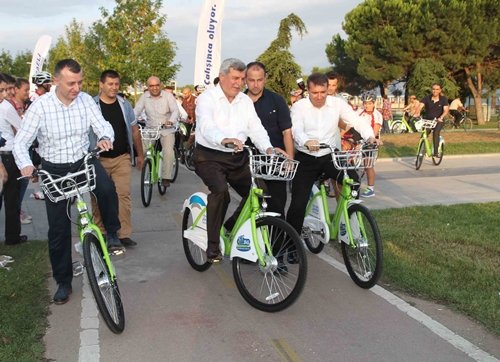 İzmit’te kent içi erişimi kolaylaştırmak, toplu taşıma sistemlerini besleyici nitelikte ara imkanlar oluşturmak, çevresel ve sürdürülebilir bir ulaşım aracının kullanılmasını özendirmek için hayata geçirilen akıllı bisikletler uygulamaya konulduğu ilk günden itibaren vatandaşlardan yoğun ilgi görüyor. Üye kartlarını alan vatandaşlar, kiraladıkları bisikletlerle Büyükşehir’in bisiklet yollarında gönüllerince dolaşıyor. İzmit’te ulaşıma yeni bir soluk kazandıracak olan akıllı bisiklet sistemiyle ilgili www.kobis.com.tr internet adresinden detaylı bilgi alınabiliyor.
