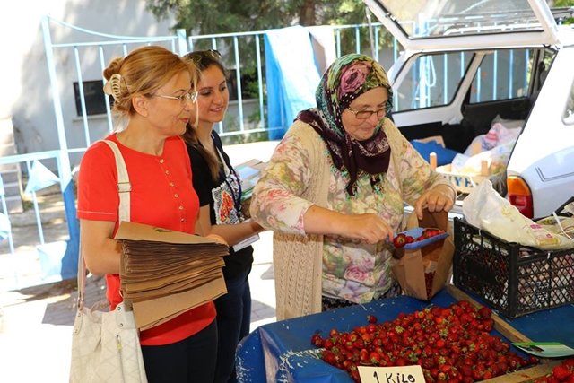 Vatandaşlara çeşitli bilgilendirme broşürleri dağıtarak bilinçlendirme çalışmaları yürüten ekipler, son olarak pazar yerinde pazarcı esnafına ve vatandaşlara file torba ve karton torba dağıtımı yaptı.
