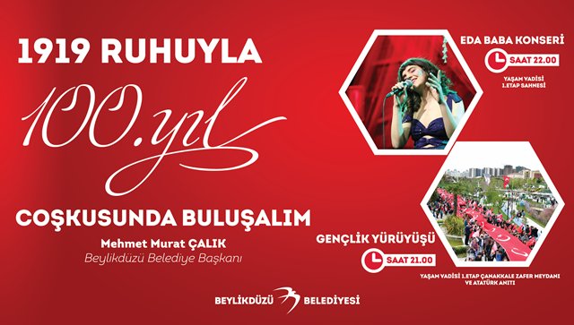 Saat 21.00’da ise 100.Yıl Gençlik Yürüyüşü Yaşam Vadisi Çanakkale Zafer Meydanı’ndan start alacak. Günün sonunda ise yetenekli ve genç müzisyen Eda Baba, saat 22.00’da Yaşam Vadisi Sahnesi’nde müzikseverler ve gençler için muhteşem bir konser verecek. Beylikdüzü’nde 19 Mayıs’ın 100.yıldönümü hep birlikte coşku içinde kutlanacak.