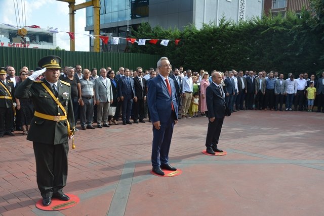 Tören, Atatürk ve Aziz Şehitlerimiz adına bir dakikalık saygı duruşu ile devam etti. Ardından İstiklal Marşı’mız okunurken bağımsızlığımızın sembolü olan şanlı Türk Bayrağımız göndere çekildi. İstiklal Marşı’nın okunması ile 30 Ağustos Zafer Bayramı için düzenlenen program sona erdi.