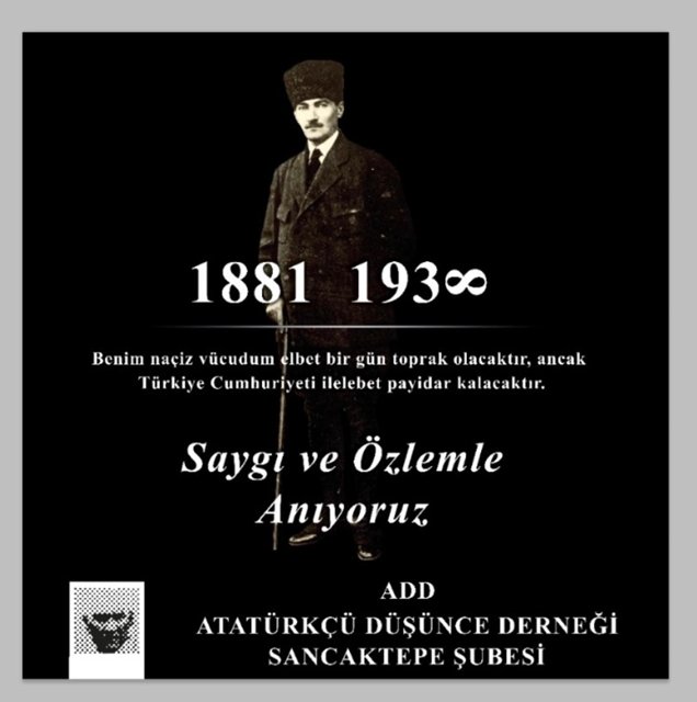 ADD Sancaktepe Şube Başkanı Güzel Kaplan mesajında; " Cumhuriyetimizin Kurucusu, Büyük Türk Devrimi’nin yaratıcısı Türk Milleti’nin makûs talihini yenen, emperyalizmin planlarını tarihin çöplüğüne atan, onurlu bir ulusu çağdaş değerlerle yeniden var eden Büyük Atatürk’ü, aramızdan bedenen ayrılışının 82. yıl dönümünde, bir kez daha sarsılmaz bağlılıkla, saygı ve minnetle anıyoruz…" dedi.