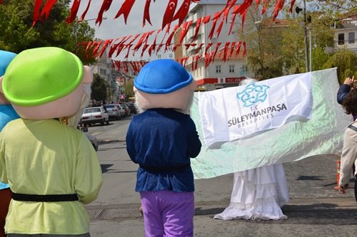 Süleymanpaşa Belediyesi önünden hareket eden maskotlar müzik eşliğinde Köprübaşı mevkiine kadar yürüyerek 1. Süleymanpaşa Çocuk Şenliği’nin tanıtımını yaptı. Vatandaşlara 1. Süleymanpaşa Çocuk Şenliği’nin broşürlerinin de dağıtıldığı tanıtımla ilgili açıklamalarda bulunan Başkan Eşkinat; “23 Nisan Ulusal Egemenlik ve Çocuk Bayramı’nda çocuklarımıza unutulmaz bir bayram yaşatmak için ücretsiz olarak sınırsız eğlence sloganıyla ve sürpriz hediyelerle 3 gün boyunca Süleymanpaşa Belediyesi Gençlik Merkezi’nde olacağız. 3 gün boyunca dolu dolu birbirinden güzel etkinliklerin olacağı 1. Süleymanpaşa Çocuk Şenliği’ne tüm çocuklarımızı bekliyoruz.” diye konuştu.