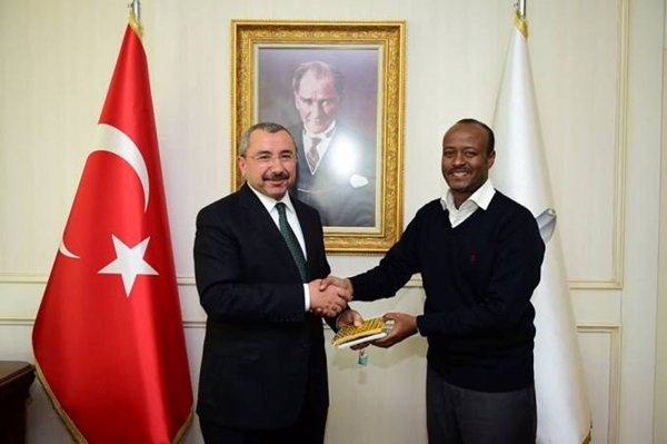 Ziyaretin sonunda Başkan İsmail Erdem, Vali Abdulmalik Muhammed’e hediye takdim ederek hatıra fotoğrafı çektirdi.