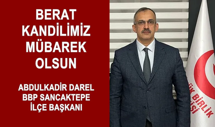 Büyük Birlik Partisi (BBP) Sancaktepe İlçe Başkanı Abdulkadir Darel, Berat Kandili dolayısıyla bir mesaj yayımladı. Darel, bu kutlu gecenin toplumsal birlik ve manevi diriliş açısından taşıdığı öneme dikkat çekerek şu ifadelere yer verdi: