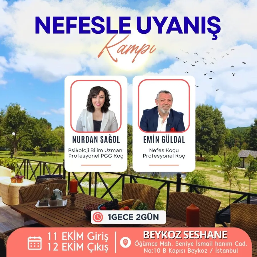 Psikoloji Bilim Uzmanı Nurdan Sağol ve Nefes Koçu Emin Güldal, doğanın huzurlu atmosferinde katılımcılara kendileriyle yeniden buluşma imkânı sunacak “Nefesle Uyanış Kampı” organize ediyor.