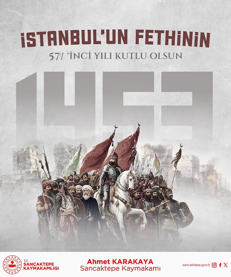 Sancaktepe Kaymakamı Ahmet Karakaya, 29 Mayıs İstanbul’un Fethi’nin 571. yıl dönümü nedeniyle bir mesaj yayımladı. Sancaktepe Kaymakamı Karakaya kutlama mesajında şu ifadeleri kullandı:
