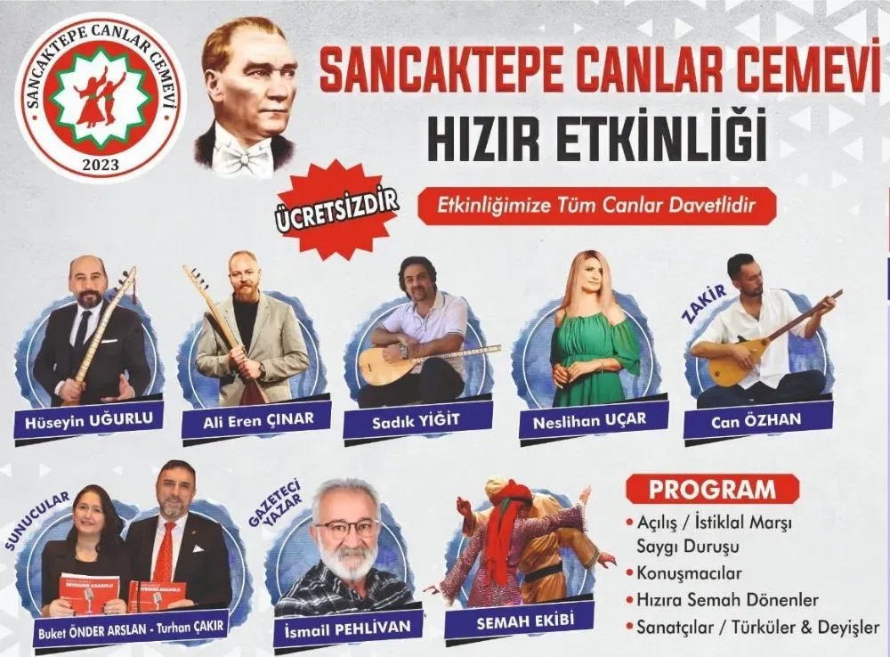 Sancaktepe Canlar Cemevi, 15 Şubat 2026 Pazar günü Hızır vesilesiyle anlamlı bir etkinlik düzenliyor. Kadir Topbaş Kültür Merkezi’nde saat 14.00’te başlayacak program, Alevi-Bektaşi inancının önemli figürlerinden Hızır’a adanmış özel bir buluşmaya sahne olacak.