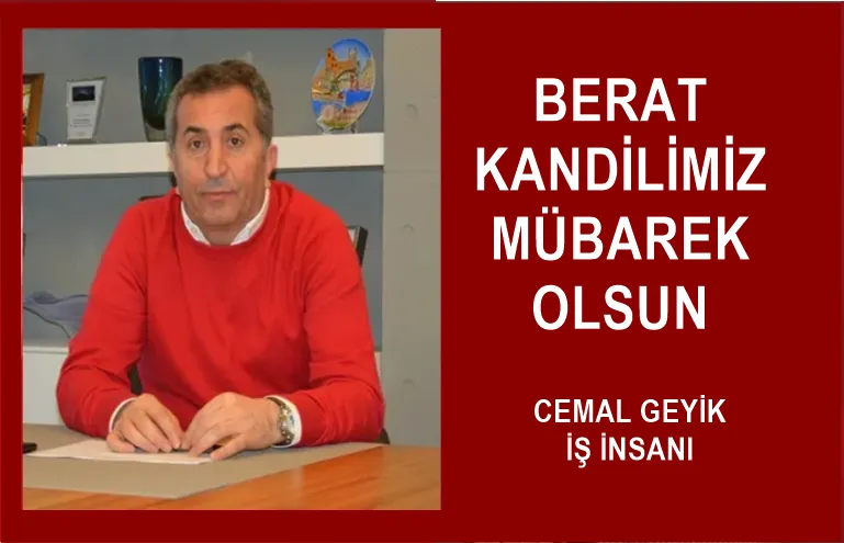 Sancaktepe ilçesinin sevilen iş insanı Cemal Geyik, Berat Kandili dolayısıyla bir mesaj yayımlayarak, bu anlamlı gecenin barış, kardeşlik ve dayanışma duygularını pekiştirmesi temennisinde bulundu. Geyik, mesajında şu ifadelere yer verdi: