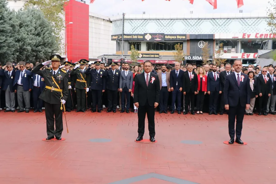 Atatürk Anıtına Çelenk Sunumunun ardından Saygı Duruşu ve İstiklal Marşı'nın okunması ile tören sona erdi.