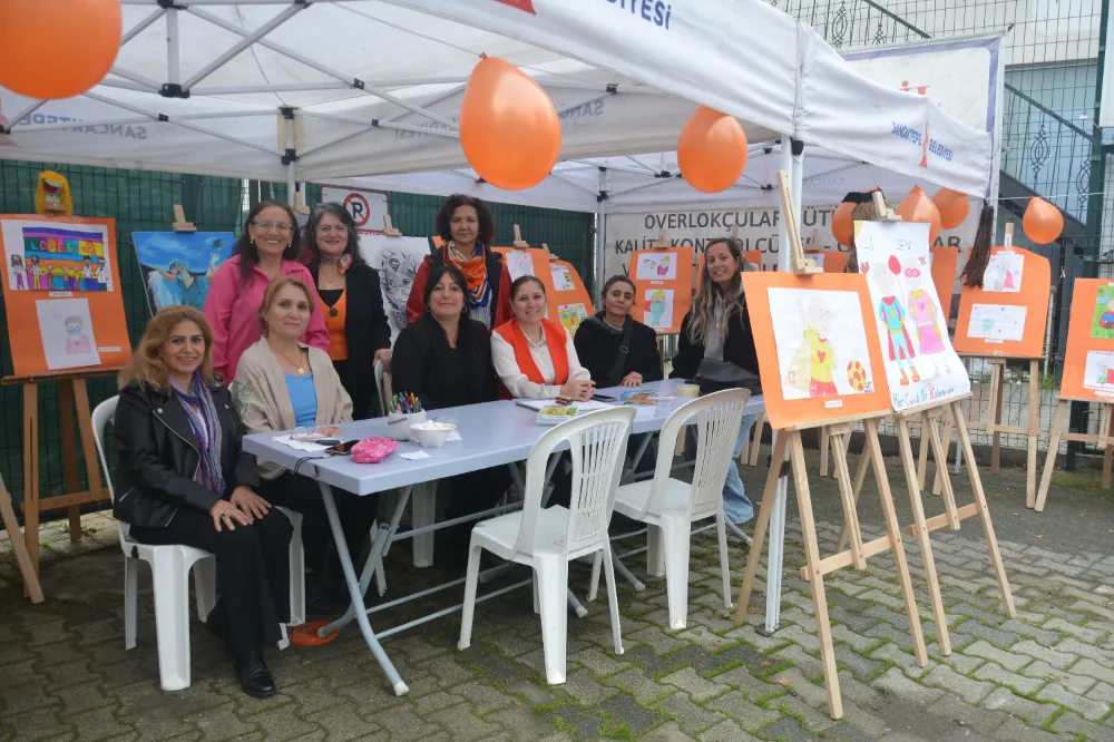 Minik ellerin yaptığı resimler, turuncu fonlar üzerine asıldı; yağmurlu havaya rağmen yüzlerde sıcacık bir tebessüm oluştu.