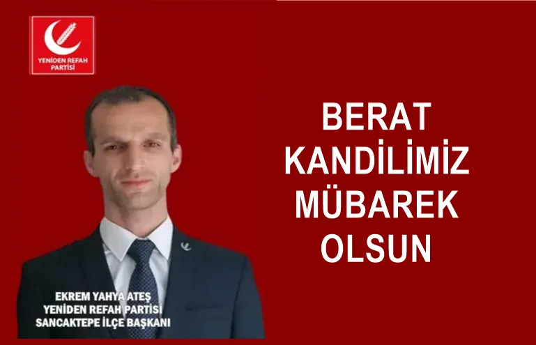 Yeniden Refah Partisi Sancaktepe İlçe Başkanı Ekrem Yahya Ateş, Berat Kandili dolayısıyla bir mesaj yayımlayarak, bu anlamlı gecenin tüm İslam âlemi için hayırlara vesile olmasını temenni etti. Ateş, mesajında şu ifadelere yer verdi: